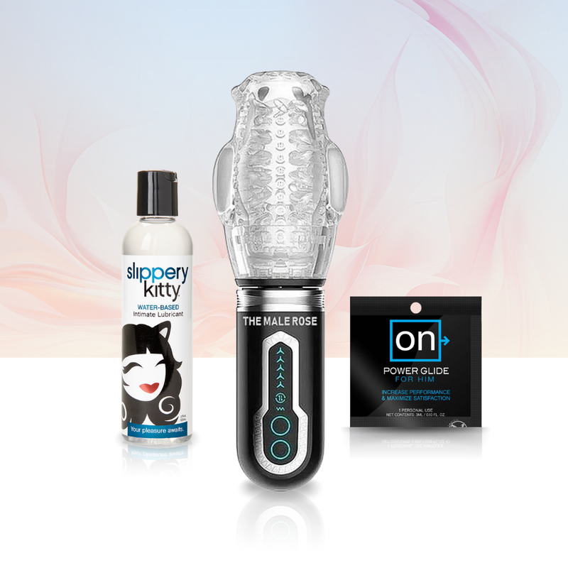 SAVE 20%on the Male Rose Valentine kit and rock his world with the award-winning Thrusting, Rotating, Vibrating Oral Sex Stroker!
